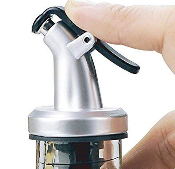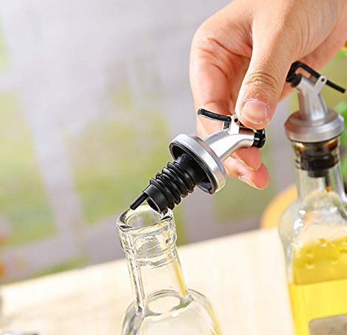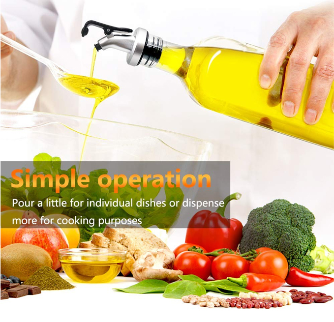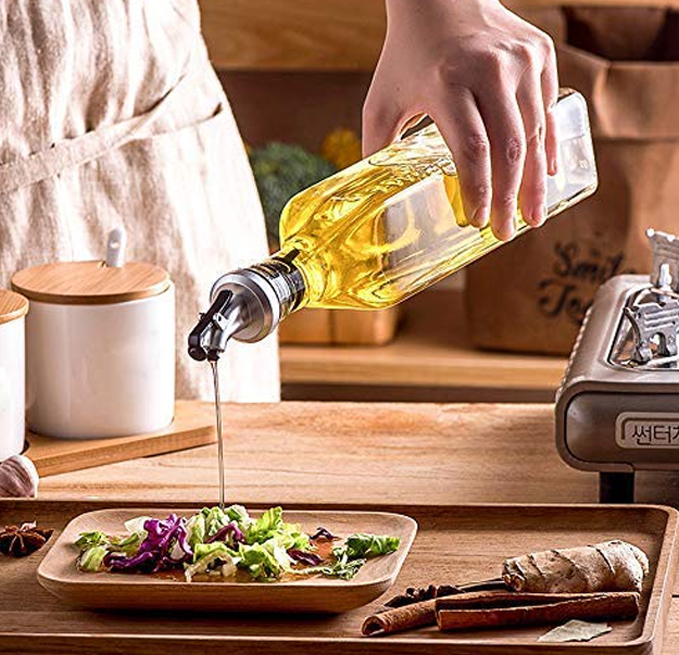 - Stainless Steel Pourer Olive oil bottle set glass dispenser vinegar cruet for cooking or salad dressing. Set of 2 different designs.
