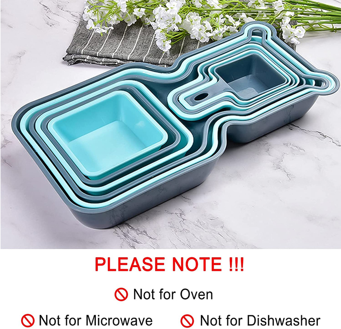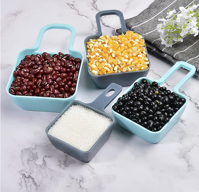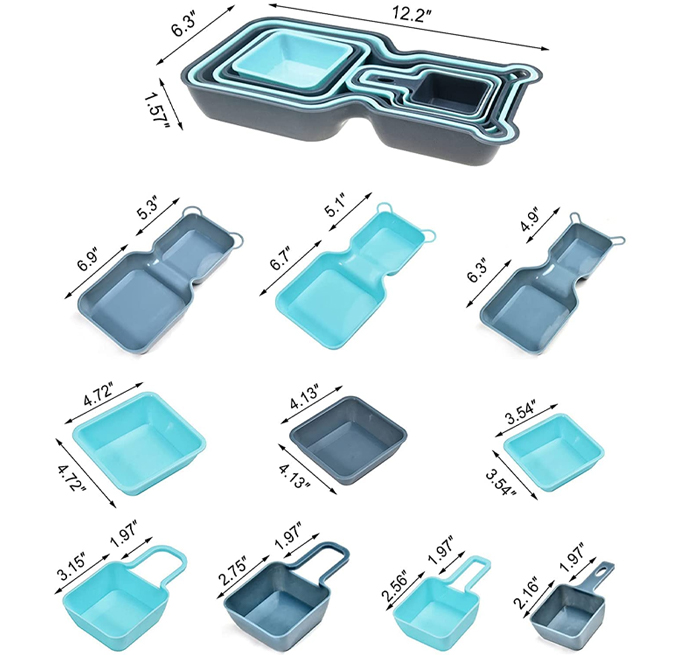 - Set includes (3) divided plates, (3) bowls and (4) scoops.