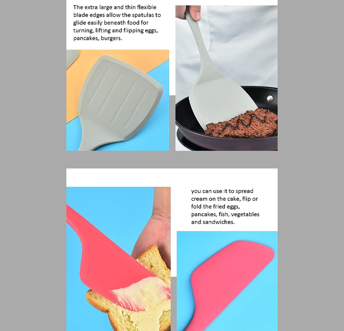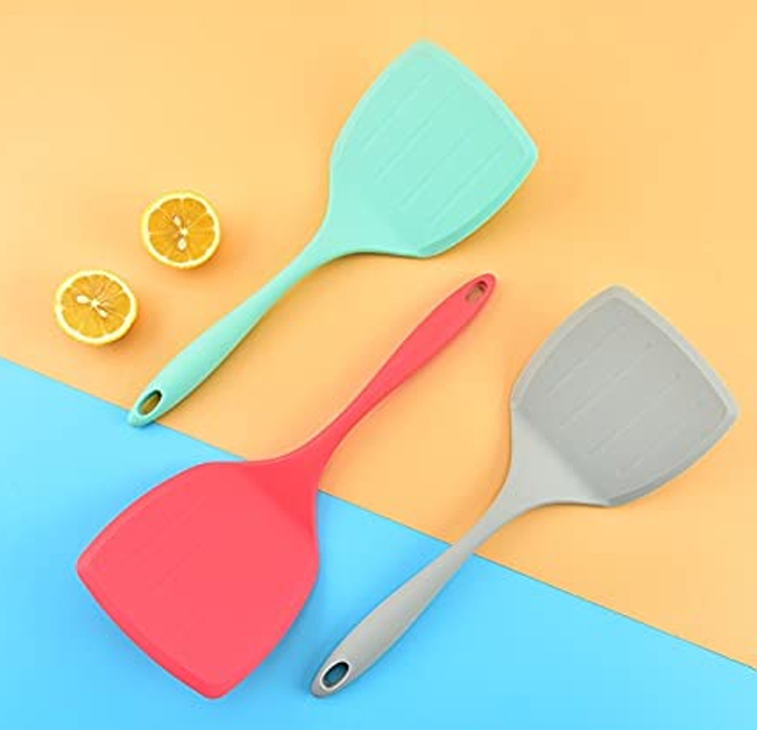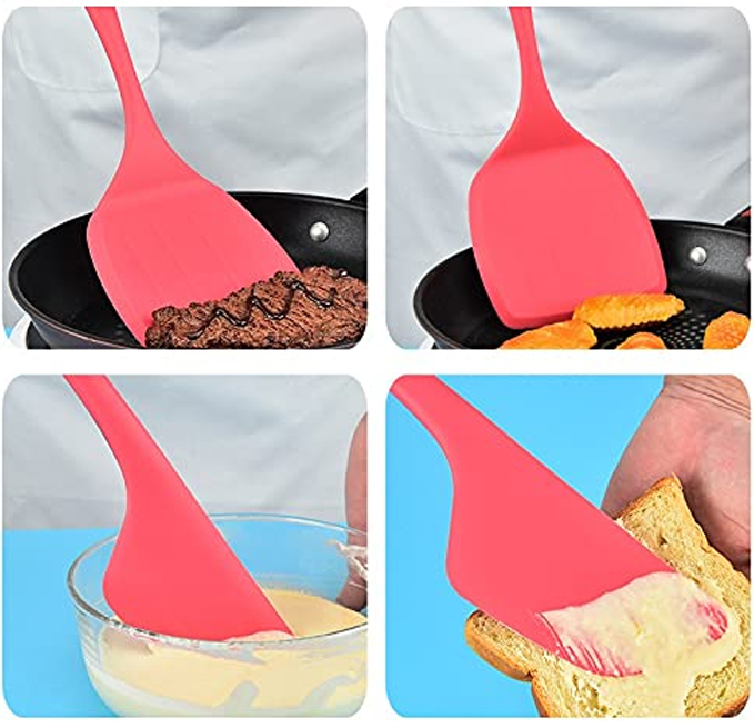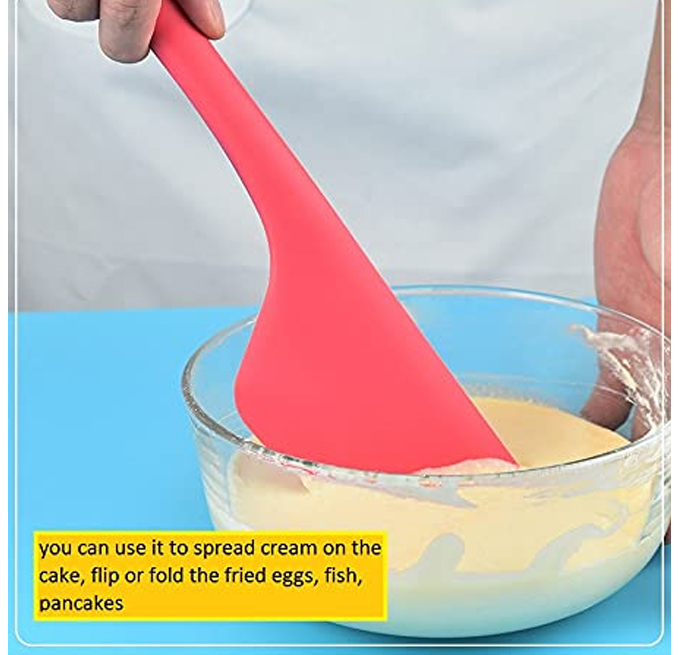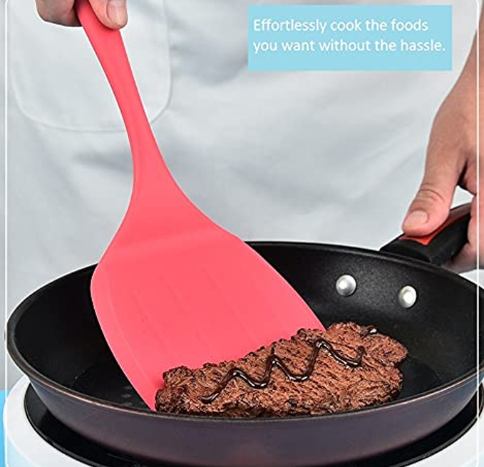 - Flexible and soft spatula head is good to flip, stir, scrape and fold the most kinds of food without scratching your coated cookware, integrated and seamless design keep it sturdy to use, will not break off or fall apart when stirring, wide edge is very suitable for turning over large pieces of food easily and effortlessly, good kitchen assistant to help you cook delicious food