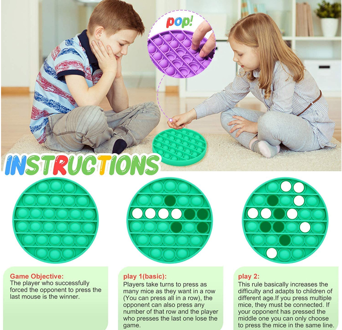- IMPROVES THINKING ABILITY - Pop it fidget toy is great for improving kid’s brain power. In 'pop it game', children take turns to press the pop fidget sensory toy's bubble that will inspire brainstorm and challenge themselves to defeat their opponents, it can improves kid's mathematical and logical thinking. The most enjoyable push pop fidget toy provides endless hours of fidget fun, let this push pop sensory toy inspires your child's creativity and sparks your curiosity!