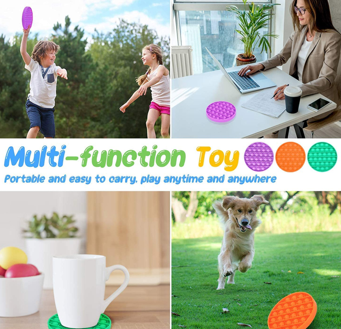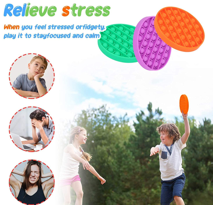 - STRESS RELIEVER - This Push Pop Bubble Sensory Fidget Toy is made of food grade silicone and pure color, without the unpleasant plastic smell, that makes this Push pop bubble sensory fidget toy with more comfortable feeling, bright colors and pleasant sounds while playing. Like a reusable bubble wrap, push pop sensory toy can provide enough “popping” sound that you really can not resist.