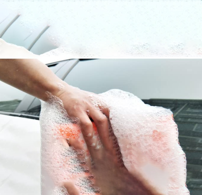 - Easy to use size for car washing and home cleaning. The soft specially formulated microfiber on the surface of the car wash sponge is highly absorbent and is designed to capture dirt, dust and other particles without leaving lint or residue and damage to paint or coating. Fluffy, smooth touch wipes away dirt and won't scratch your car or furniture. The material is gentle on the skin