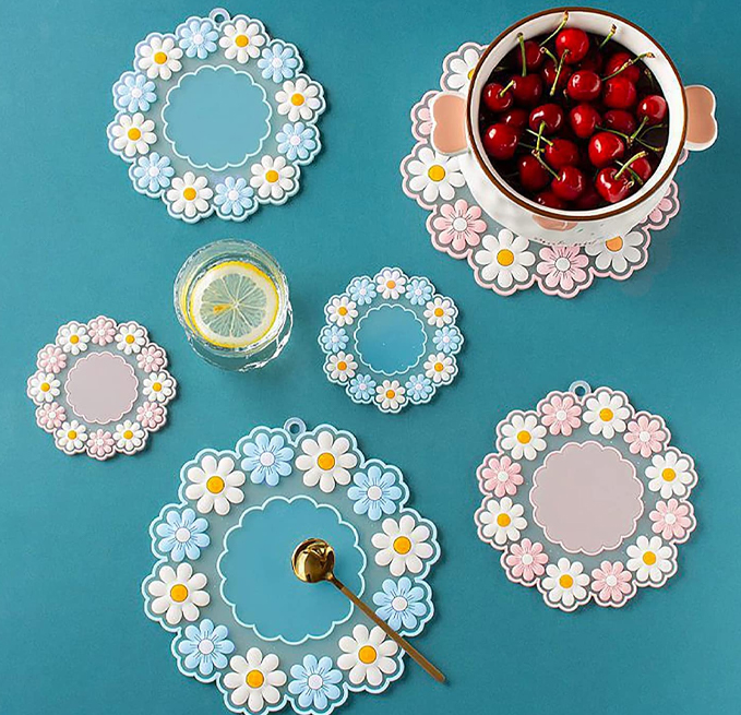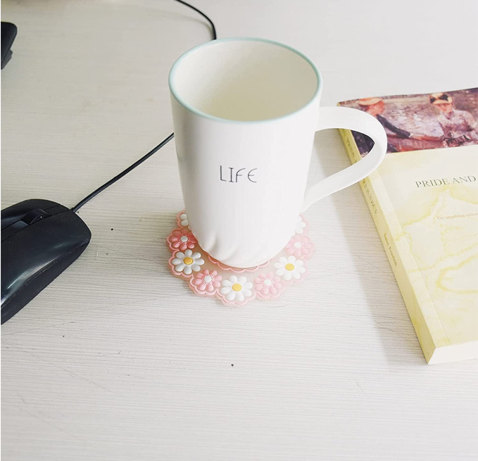 - The flower coasters fit all cups such as coffee cups, tea cups, beer mugs, beer glasses, soda bottles and jugs. You can also use it as a cushion for small potted plants on the desk to prevent the bottom from leaking and soiling the desk.