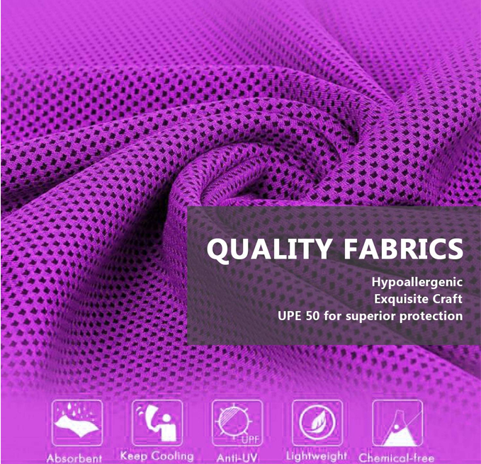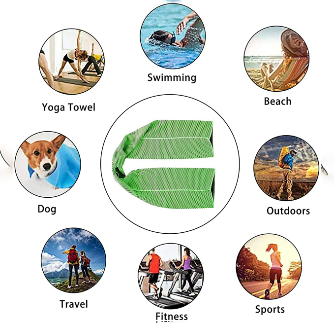 - INSTANT COOLING, REUSABLE - The cooling towel is made of hyper-evaporate breathable mesh material. The unique cooling system uses moisture from the towel to draw the sweat away from your skin to keep you cool. Everyone can use the cooling towel, even pets.