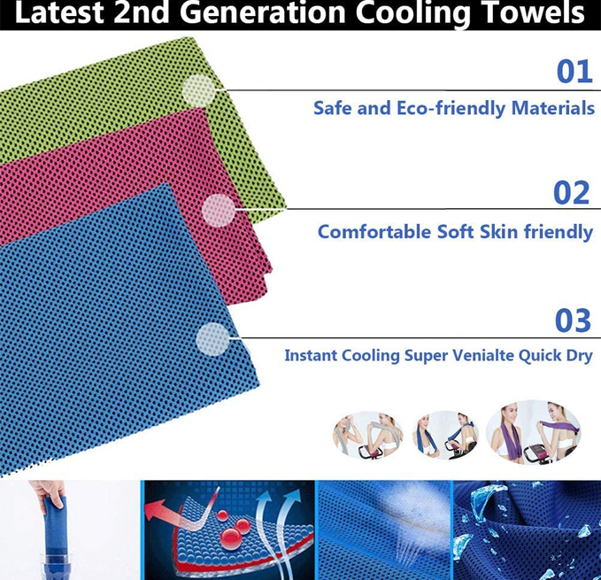 - INSTANT COOLING, REUSABLE - The cooling towel is made of hyper-evaporate breathable mesh material. The unique cooling system uses moisture from the towel to draw the sweat away from your skin to keep you cool. Everyone can use the cooling towel, even pets.