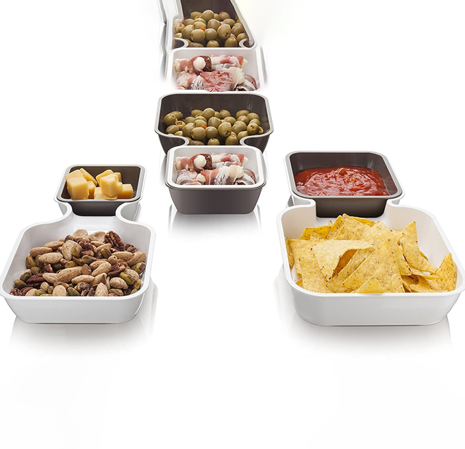 - [SET INCLUDES] (3) divided plates, (3) bowls and (4) scoops.