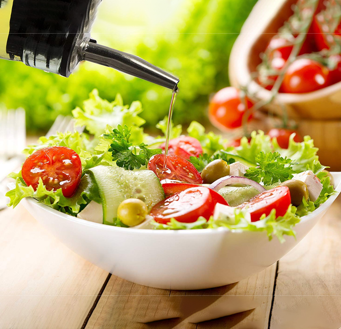 - ELEGANT & CLASSY DESIGN: Our clear olive oil dispenser and vinegar dispenser bottles are elegantly designed to add more charm to your kitchen décor and dinner tables while allowing easy controlled pouring even with one hand making it even more convenient to use.