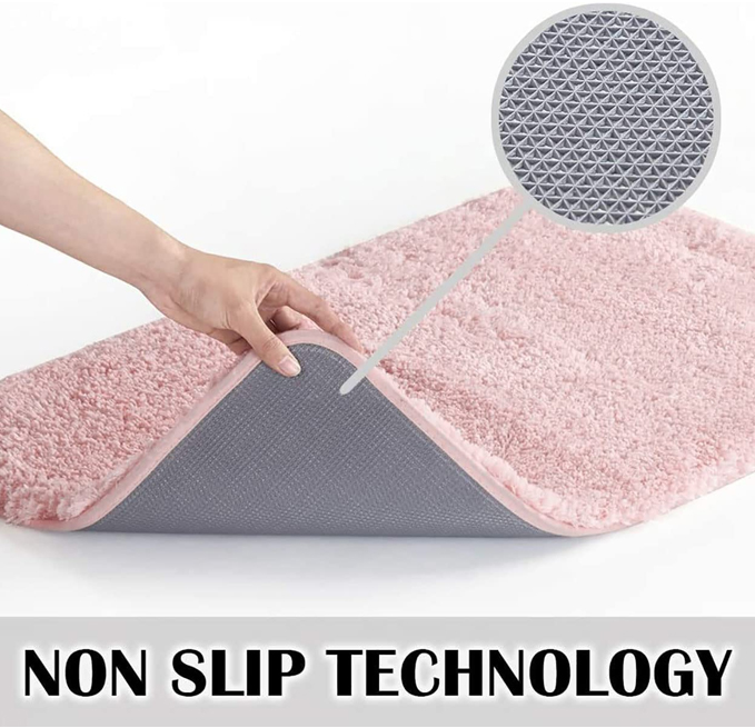 - NON-SLIP- The backing of non-slip bath rug is made of TPR rubber material with geometric design. The anti slip bath mat will keep firmly in place, it's more safe and cozy. Please place bathroom rug on dry smooth floor.