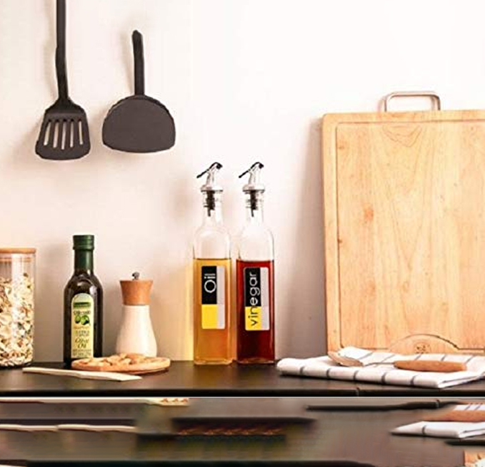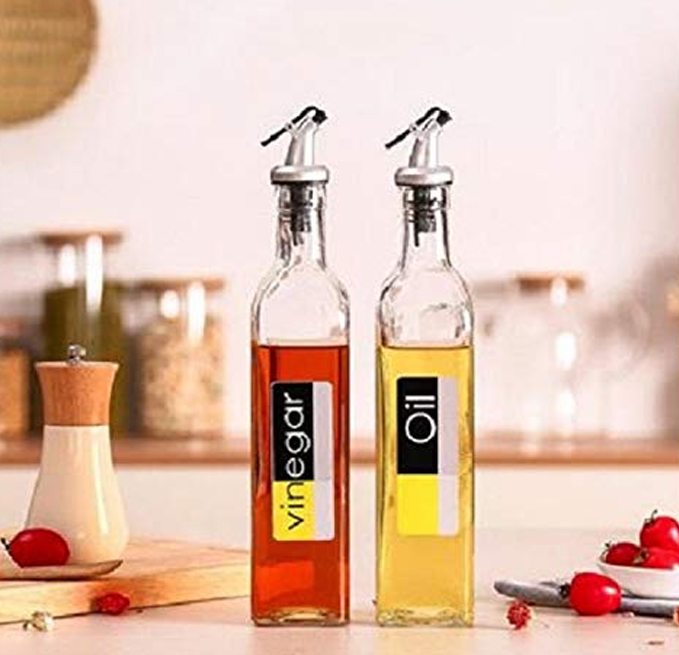 - Excellent addition to your kitchen This oil and vinegar cruet bottle set is an absolute must have for your kitchen and excellent addition to your table setting. It is travels seamlessly from your kitchen counter, to your cook station, to your dining table. This 2-Piece set is frequently used for infused oils, vinaigrettes, salad dressings, flavored vinegars, and more. Ideal for restaurants, bars, catering services, as well as home use.