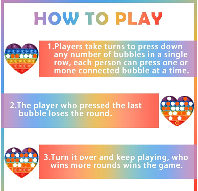 - EDUCATIONAL GAMES FOR KIDS: A brain-training game tool for toddlers and kids. It’s good for develop kids mental arithmetic, thinking logic and fine motor when kids play it with game rules. Players take turns press the bubbles with different rules; the person pressed the last bubble, which lost the game.
