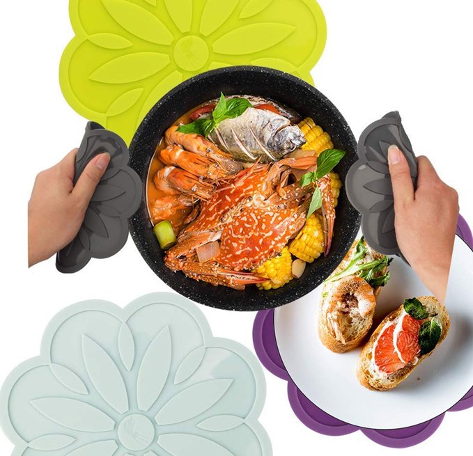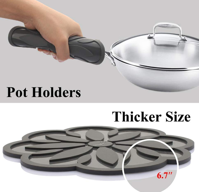 - ? MULTI-PURPOSE : flexible, non slip and resistant to 446°F, can be used to protect your kitchen surface from scalding dishware or as pot holders to grip hot pans. It can also be as a cup coaster, jar opener, spoon rest.