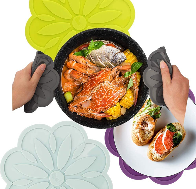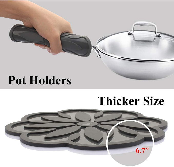- MULTI-PURPOSE : flexible, non slip and resistant to 446°F, can be used to protect your kitchen surface from scalding dishware or as pot holders to grip hot pans. It can also be as a cup coaster, jar opener, spoon rest.