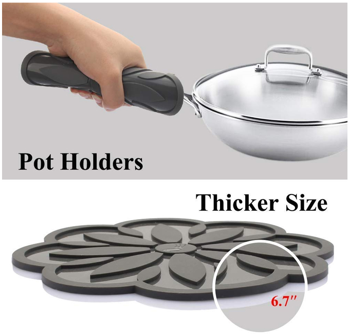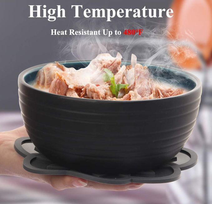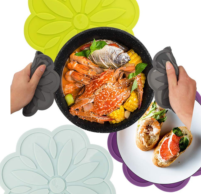 - ? MULTI-PURPOSE : flexible, non slip and resistant to 446°F, can be used to protect your kitchen surface from scalding dishware or as pot holders to grip hot pans. It can also be as a cup coaster, jar opener, spoon rest.