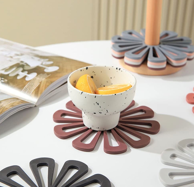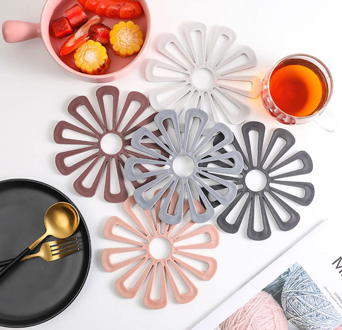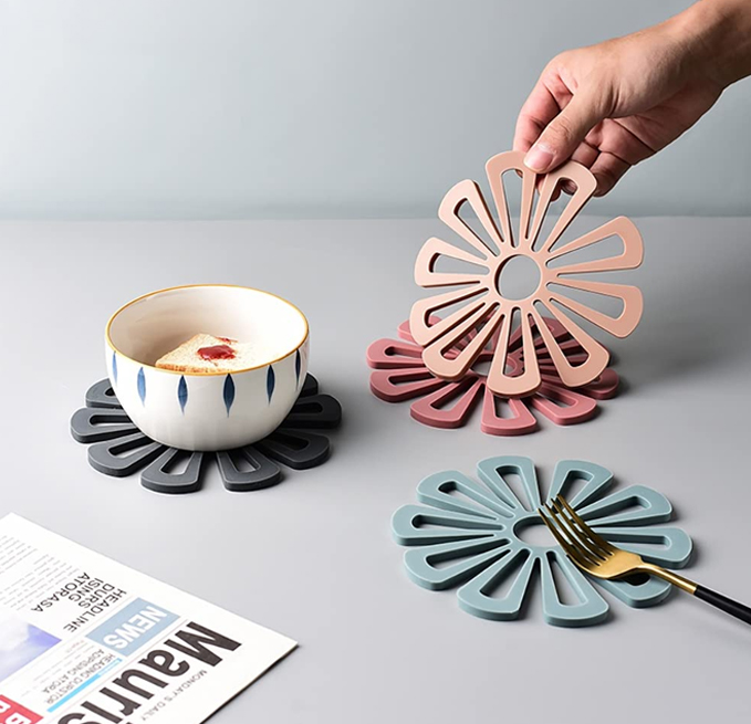 - Multi-Purpose: The soft and flexible silicone trivets are versatile; Use it as a trivet to protect your kitchen surface from all scalding dishware. They are also suitable for kitchen mats, table mats, bowl mats, dish mats and pitcher coasters.