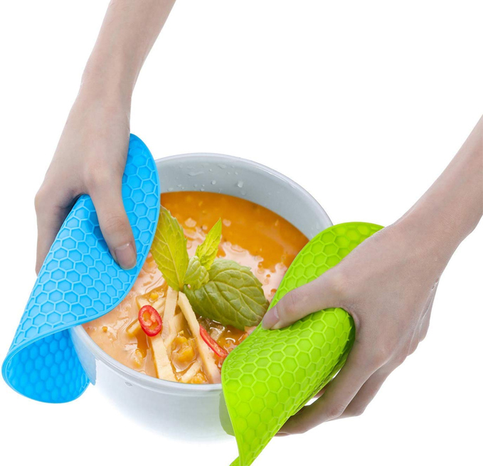 - FOOD-GRADE SILICONE&PERFECT SIZE - Made from 100% BPA free food grade silicone,can pass FDA test, non-slip,flexible enough to comfortably grab a hot dish or pan, size 7x7 Inch,Weight:260g per set(thicker and weighter than others).