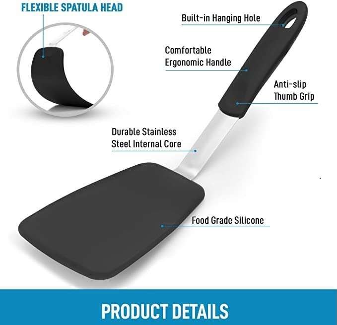 - Ergonomic Non-slip Grip Handle: This ultimate silicone spatula is made with a thermoplastic strong handle designed with a non-slip thumb grip, providing a superior and comfortable grip making it firm enough to keep the spatula core flexible to slide under food and firm enough to flip them. Note: Handle can melt if it comes in contact with the edge of a hot pan if left over a long period of time.