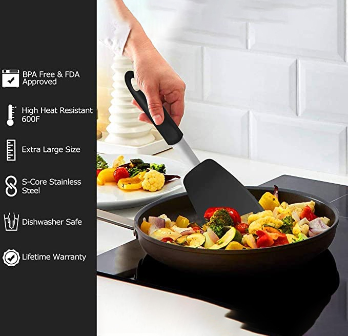 - Flexible Design With Stainless Steel Core: Silicone tools are ideal if you want to keep your non-stick pans in good condition for a very long time, but they don't always have the lifting capacity compared to metal varieties. This spatula, however, combines a superior quality stainless steel core with the silicone mold, providing the tool with strong and durable construction that can hold up to the demanding applications in your kitchen. Its flexible slim edge glides easily beneath most foods.