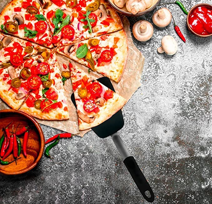 - Does Not Scratch Pans & Cookware: Avoid those nasty scratches on the coating of your beloved non-stick pans or skillets with P-Plus Kitchen Flexible Silicone Spatula. Its angle edge head is made of high-quality heat resistant material that can handle higher temperatures to 600°F. Ideal for sautéing, scraping, and flipping various sizes of meat & fillets. Dimension: 13.1 x 4 inches
